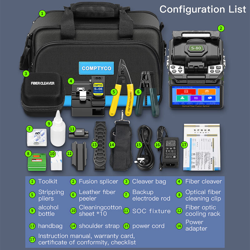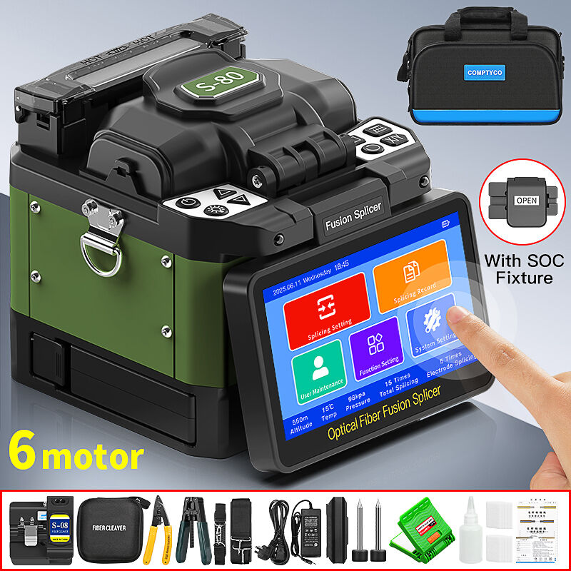 يُعَدُّ جهاز COMPTYCO S-80 جهاز لصق ألياف ضوئية بالانصهار مزوَّد بستة محركات ومُصمَّم خصيصًا لتطبيقات الشبكات الضوئية حتى المنزل (FTTH)، وبسعرٍ اقتصاديٍّ جذَّاب. ويجمع هذا الجهاز بين المزايا الأساسية المتمثلة في الدقة العالية، والكفاءة التشغيلية، والتكامل الوظيفي، مما يجعله مناسبًا تمامًا لمجال هندسة الاتصالات، ونشر حلول النطاق العريض في الميدان، والصيانة التشغيلية اليومية لشبكات الألياف الضوئية. ويأتي الجهاز كمجموعة كاملة التجهيز، ويمكن تشغيله فور فتح العلبة مباشرةً. كما أن تصميم هيكل الجهاز يمتاز بالخفة والتنقل السهل، إضافةً إلى المتانة والمتانة العالية، ما يجعله مناسبًا لمختلف السيناريوهات التشغيلية الميدانية.