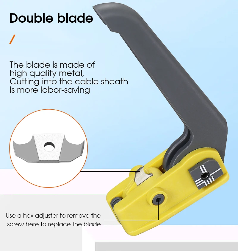 COMPTYCO Abrelatas para cable horizontal y vertical 8-28,6 mm, cuchillo para pelar cable de fibra, cuchillo para pelar cable blindado, abrelatas para ventana sky